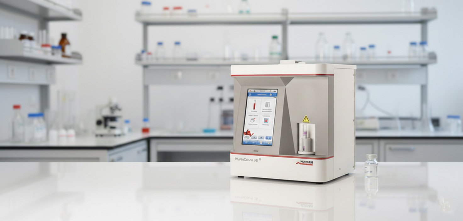 A HUMAN 3-part hematology analyzer is a medical device that measures and analyzes blood cells to provide a count of the three main types of white blood cells: lymphocytes, midsize cells (monocytes/granulocytes), and neutrophils. These analyzers use a method like the impedance principle to count cells based on their size and volume.